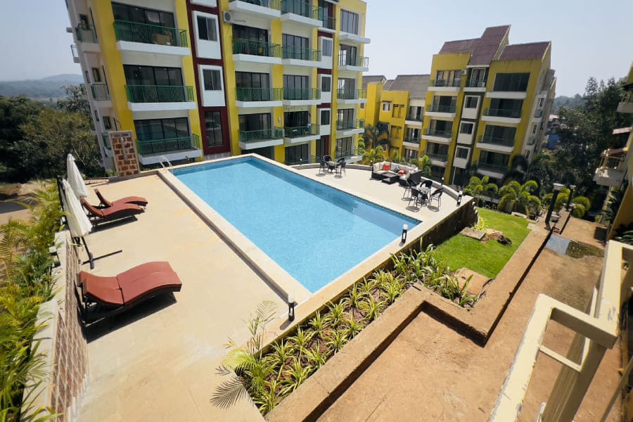 The 2 bedroom apartment was spacious, clean, comfortable and well equipped. The air conditioning in each room and water purifier were welcome additions. The view of the sunset was beautiful from the balcony. The pool is clean and refreshing. Chaitra & Arjun were always on hand to help with anything we needed. Only things to note are that sometimes there was a lack of power/water during our stay but I think this was a general problem in the area. Also we were very glad that we had a car to drive to the beaches as the property is up a hill and we would not have wanted to walk up in the heat. Overall a very enjoyable stay in a wonderful part of South Goa.