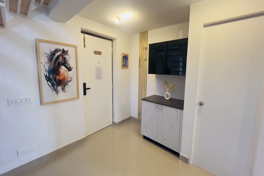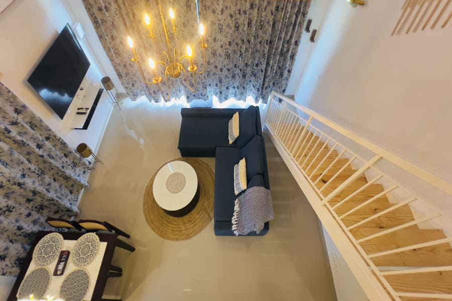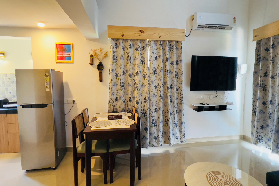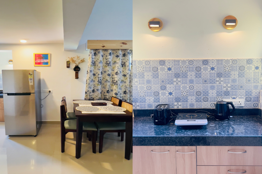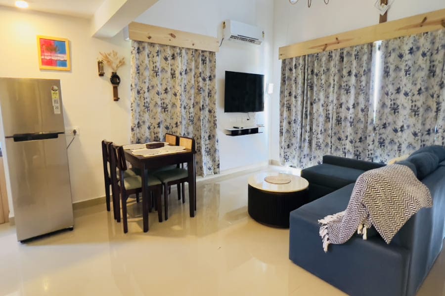 Sky Deck - Nautical Nest offers a charming 1BHK duplex with stunning mountain views, perfect for a serene and comfortable stay. This thoughtfully designed space features a cozy bedroom, a stylish living area, and a fully equipped kitchen, providing all the comforts of home. The highlight is its private deck, where guests can unwind while soaking in the breathtaking mountain scenery, making it an ideal retreat for nature lovers and travelers seeking peace and relaxation.
