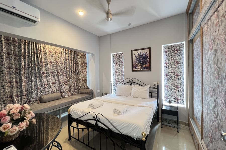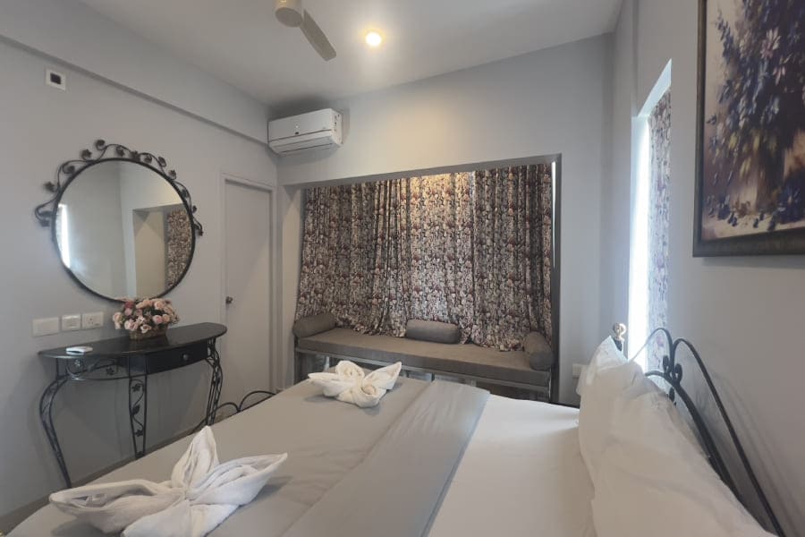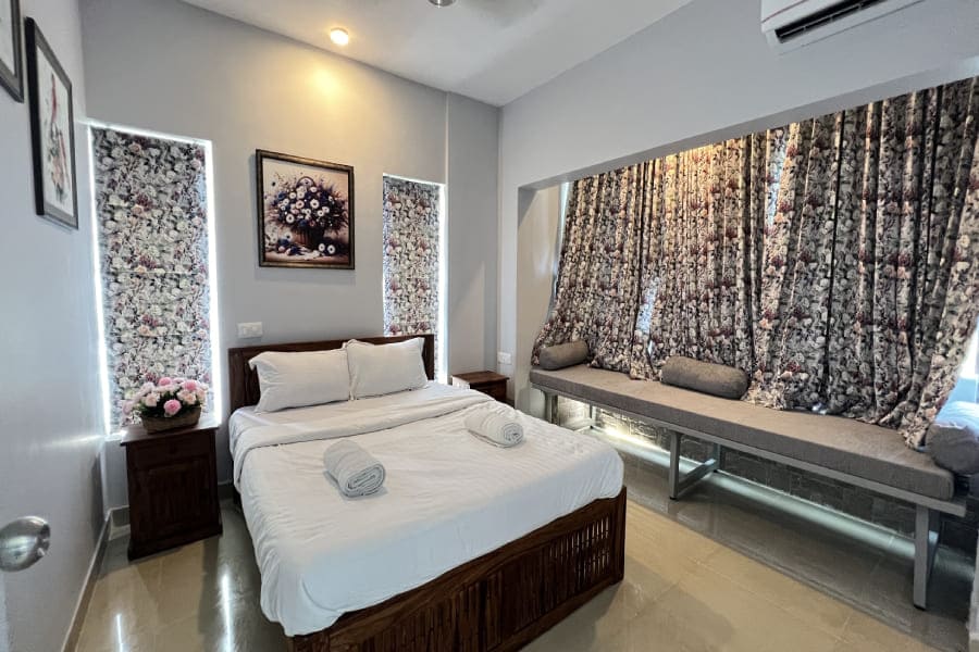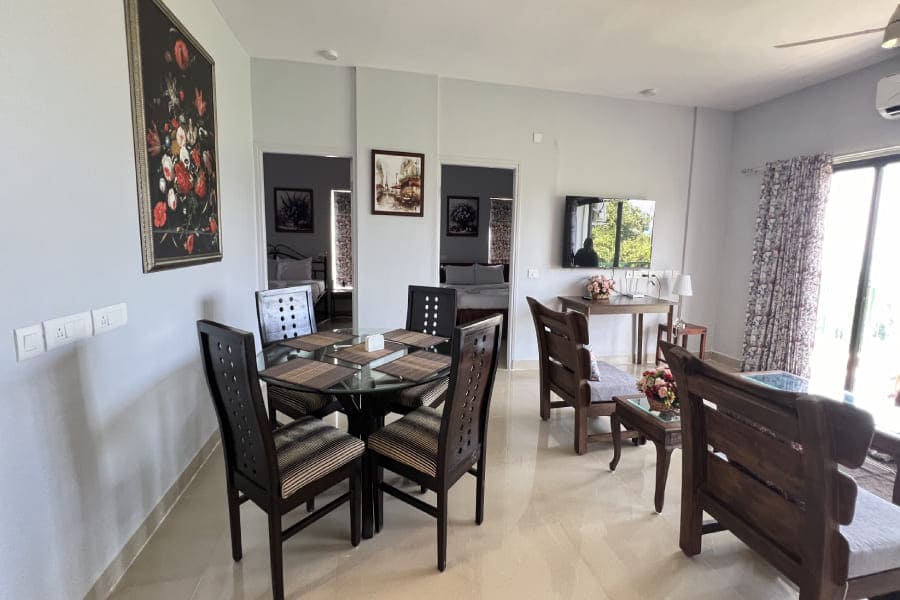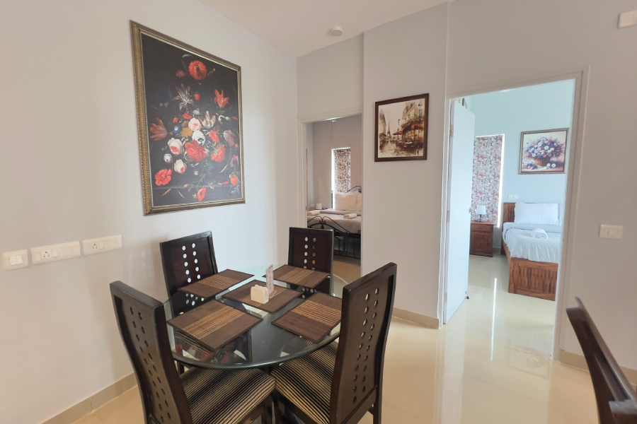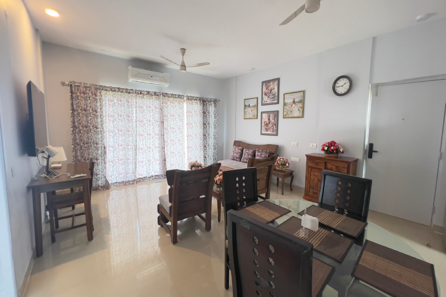 Tequila Sunset - Oceanview - 2BHK offers a stylish and relaxing retreat with mesmerizing views of the ocean. This thoughtfully designed space features sleek grey-themed interiors, spacious bedrooms, and a cozy living area perfect for unwinding. The fully equipped kitchen and modern amenities ensure a comfortable stay, while the balcony offers a stunning vantage point to enjoy vibrant sunsets over the sea, making it an ideal getaway for families or small groups.
